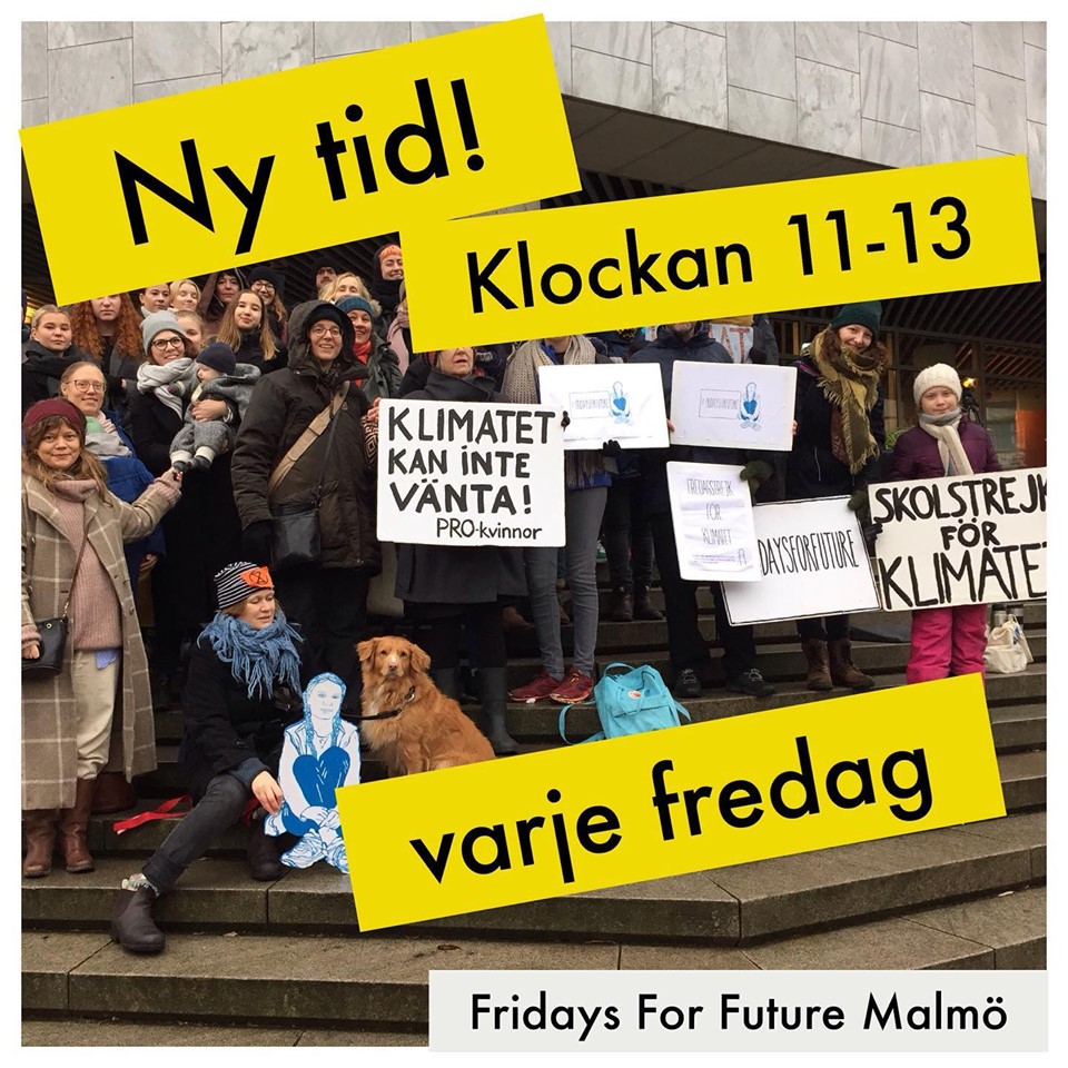 Fridays For Future Malmö träffas nu från kl 11 till kl 13 varje fredag.