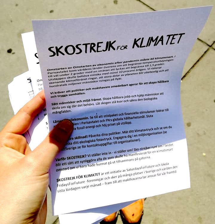 FREDAGAR: Malmö For Future fortsätter med skostrejker varje fredag vid Stadshuset klockan 11-13. LÖRDAG 25 JULI: Skostrejk lördagen 25:e juli vid TRIANGELN klockan 11-13. Planen är att ha skostrejk sista lördagen varje månad på denna plats. Vi strejkar även om vi inte är där! Du kan på fredag komma och ställa upp skor utanför Stadshuset… Fortsätt läsa Skostrejk varje fredag OCH även lördag 25 juli!