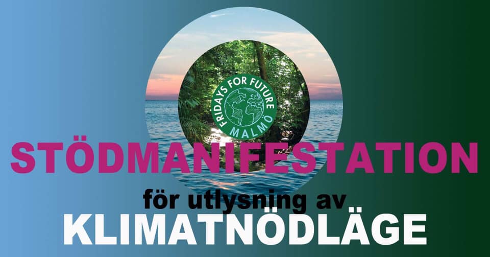 EXtinction Rebellion Skånes Malmöinitiativ om att Malmö stad ska utlysa klimatnödläge fick 800 röster. Malmös politiker har ännu inte agerat men torsdagen den 31 oktober ska initiativet tas upp i kommunfullmäktige. Nu bjuder Fridays for Future in till en stödmanifestation för initiativet: Samling kl 11 utanför Stadshuset, August Palms plats 11.15 avgång procesion till Stortorget12.15… Fortsätt läsa Stödmanifestation för klimatnödläge 31 oktober 2019